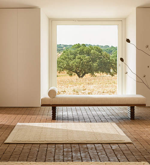 Barrocal conveys this idea of a simple refuge, a pause in the midst of nature. A rug that does not narrate but evokes the slow time of the countryside.