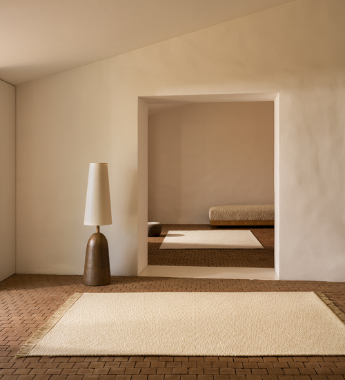 There is no literal depiction, only rhythm, texture, and memory of small forms that sustain vast landscapes. The rug captures the way time inscribes itself on surfaces, trunks, and roots.