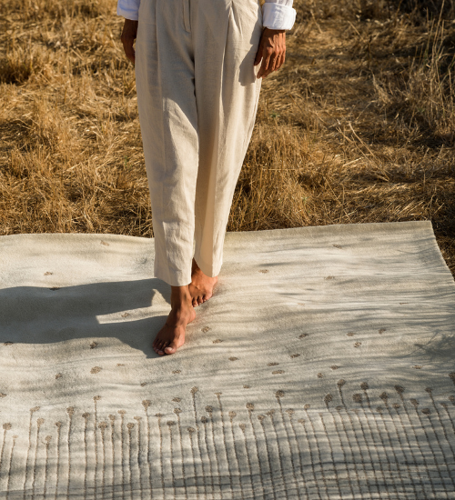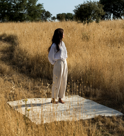 Brisa is born from this sense of passage, of light presence, of suspended time. A rug that does not describe the landscape but suggests its most delicate movement.