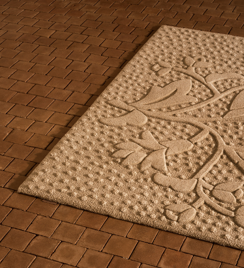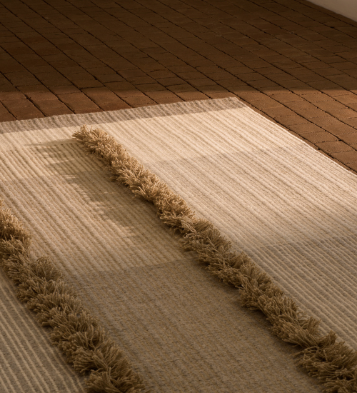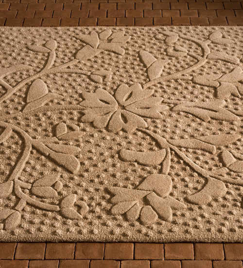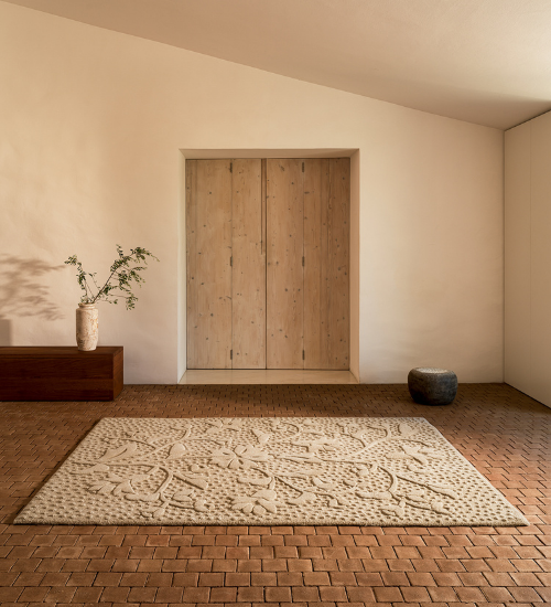 Inspired by the traditional ceramics of Nisa, this rug interprets the floral motifs engraved on clay vessels with a new vocabulary: that of textiles.