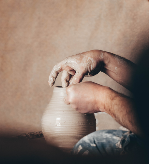 Here, ornament is revealed within the very structure, like pieces moulded by hand and marked with simple gestures.